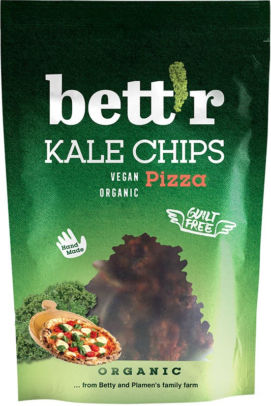 Bett'r rapean herkulliset klassisilla pizzamausteilla maustetut lehtikaalisipsit. Täydellinen balanssi herkuttelun ja hyvinvoinnin välillä. Luomuviljelty ja käsin poimittu pienellä perheomisteisella maatilalla Bulgariassa. Lehtikaalisipsit ilmakuivataan, jotta niiden ravinteet ja entsyymit säilyvät parhaiten ja tämän jälkeen niihin sekoitetaan yhdistelmä valikoituja mausteita sekä energiaa antavia siemeniä.