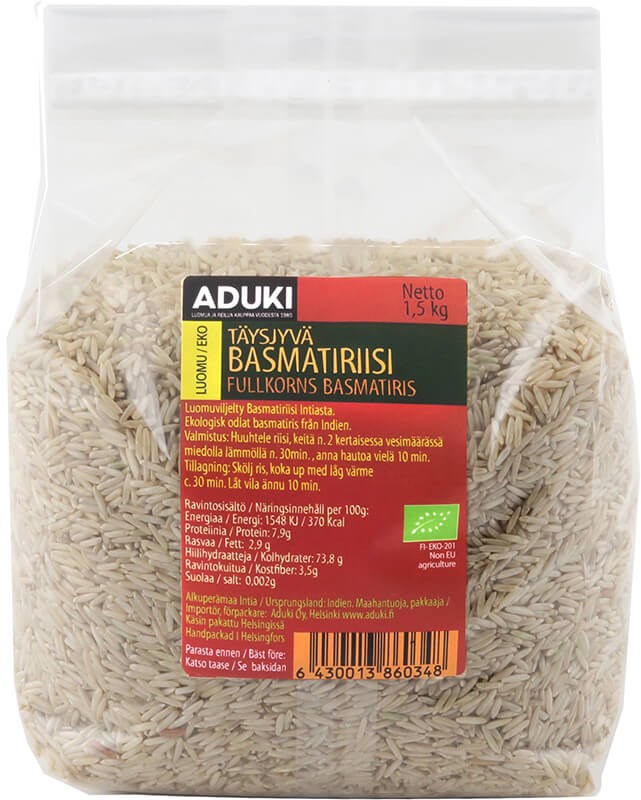 Nimi: Basmatiriisi, täysjyvä 4 x 1,5 kg, Aduki
