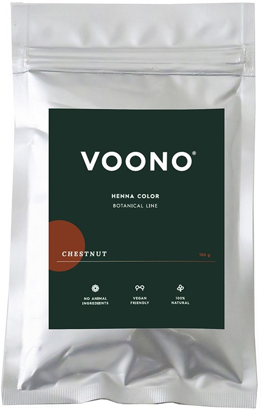 VOONO kastanjansävyisellä henna-kasvihiusvärillä annat hiuksillesi kestävän ja luonnollisen neutraalin tummanruskean sävyn, ilman liikaa punaisuutta tai kylmiä sävyjä. 100% luonnollinen henna-kasviväri on hellä hiuksille eikä sisällä ylimääräisiä kemikaaleja tai keinotekoisia ainesosia. Henna-kasviväri suojaa hiusta ja antaa sille upeaa kiiltoa. Vegaaninen.